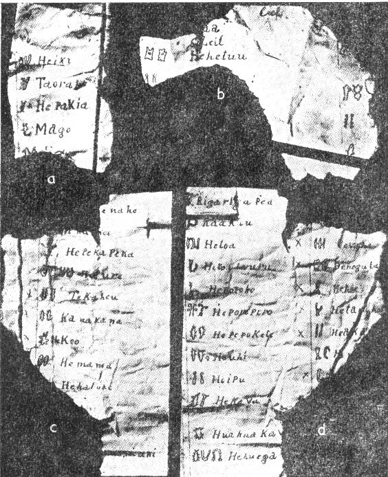 Параллельные тексты некоторых иероглифических таблиц с острова Пасхи.
