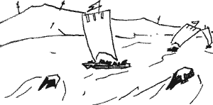 неприступные заграждения: рогатины, причудливые коряжины, непроходимые