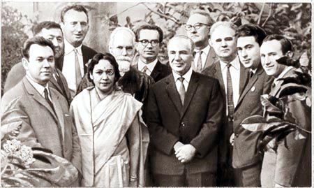 В.М. Глушков, С.А. Лебедев, Э.К. Первышин (в центре) во время одной из международных конференций