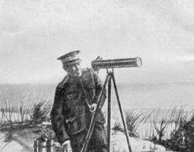 МАЙОР ВУД на испытании своего сигнализационного телескопа, сделанного