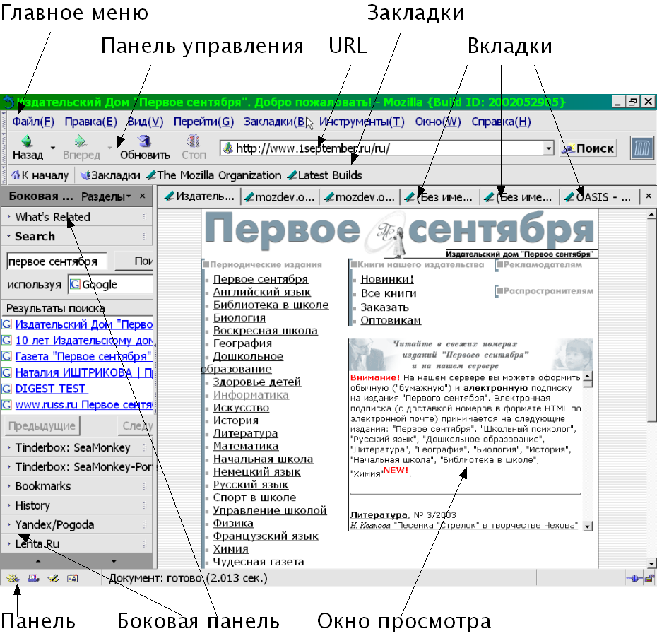 Язык XUL. Видимо, самой интересной особенностью Mozilla является реализация интерфейса пользователя на языке XUL, представляющем собой XML-приложение, т.е. набор определений вида и поведения визуальных объектов, свойственных современным графическим интерфейсам пользователя, на расширяемом языке разметки XML (об XML и его интегрирующей роли в современных приложениях компьютера подробнее говорилось в "лекции" 1).