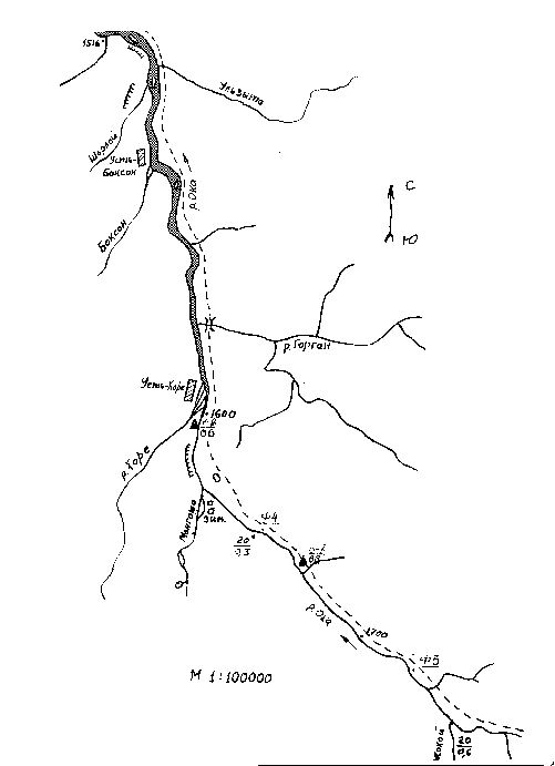 Описание сплава по верховьям р.Ока от устья р.Хоре до устья р.Сайлыг