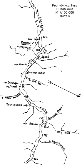 Вода за предыдущую ночь поднялась еще примерно на 5 см. Всего в устье Кызыл-Хема подъем воды составил, судя по берегам, 50-70 см.
