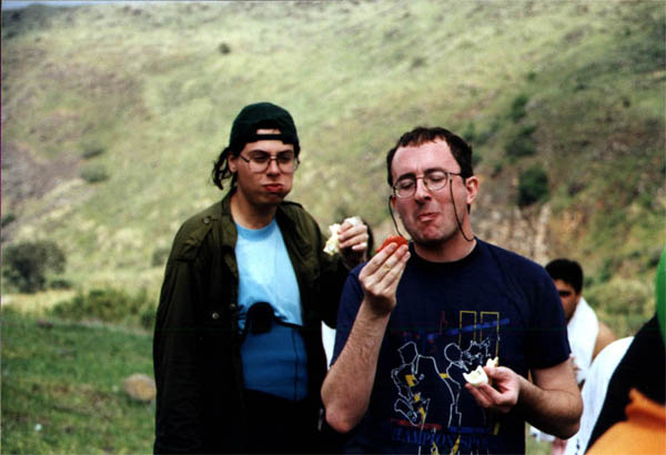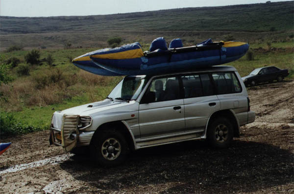 Доехали, а остальные уже позавтракали и даже почти собрались. Оставили нам на донышке немного рисовой каши и одну ложку на двоих (Уу, буржуи) 1. Взвалили мы вчерашнюю четверку и кормановскую двойку на джип аборигенов (их зовут Боаз и Надав. Боаз - который работал инструктором на катамаранах, Надав - владелец джипа, весьма пригодившегося при перевозке катов). Подъехали к "Kfar Hanassi" - до того дня - конечная точка маршрута, а сегодня - начальная. Как раз когда подъехали кончился дождь, чему лично я по неизвестным причинам был рад (хотя казалось бы, какая разница, мокнуть только снизу и с боков или еще и сверху?)