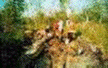 почти на метр ушедшего вглубь торфа, готовим обед, потом очень долго