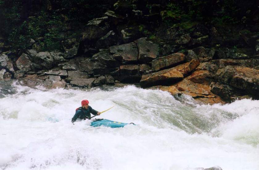 спасконцом внизу порога, далее только активная страховка каяками.