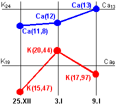 Произведенные в это время определения "K" и "Ca" показали следующее: