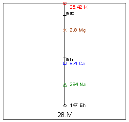 3.IV - Анализ крови: Na=320mg%; K=17,2mg%; Mg=2,3mg%; Ca=8,8mg%; Eh=155мВ.
